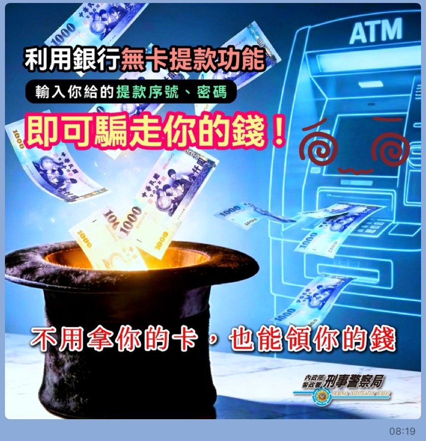 最近詐騙集團盯上了銀行的「無卡提款」功能!
